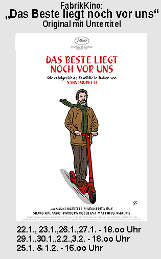 | Eintrittspreise Normal: 7€ (auch Rentner und Auszubildende) Reduziert: 6€ (Behinderte, Schüler, Kinder, Arbeitslose, Studenten) Sondervorführungen für Gruppen/Schulen möglich!!! Infofon: 0208/87 15 07 (Büro) 0208/85 97 877 (Kino) Kartenreservierung von 17.30 Uhr bis 20.15 Uhr (nicht Mi,Sa) 0208/85 978-0 (Zentrale Altenberg) mehr übers Kino & Impressum Wegbeschreibung: Bus & Bahn: Bis Oberhausen HBF, dort zum Westausgang, auf der gegenüberliegenden Seite befindet sich das Zentrum Altenberg/Rheinisches Industriemuseum. Mit dem Auto: A3 - Abfahrt: OB-Lirich/DU-Meiderich - Richtung Oberhausen Zentrum A40 Abfahrt: MH-Styrum - Richtung:Oberhausen A42 Abfahrt: OB-Zentrum/Sterkrade - Richtung: MH/OB-Zentrum Bitte beachten, dass die Hausnummer "Hansastraße 20" für den gesamten Gebäudekomplesx inklusive Museum gilt. Falls Sie/Ihr von der Bahnhofsseite kommt - einfach den Eingang des Industriemuseums passieren - dann liegt das Kino auf der linken Seite. Mit dem PKW kann von der "Altenberger Straße" auf das Gelände gefahren werden. "Das Kino kann man auch mieten! Für individuelle Filmvorführungen und für Feierlichkeiten vieler Art." Vermietungsanfragen bitte ab jetzt an: Sabine Wendland 0208 8597815 oder per Mail unter vermietung@akug-gmbh.de |